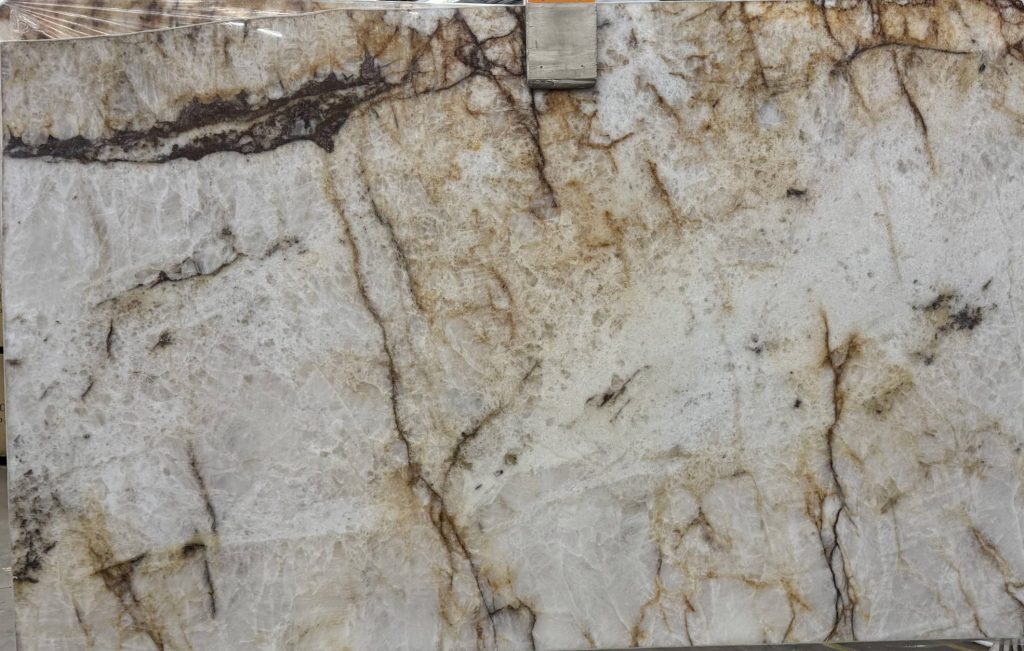 Our stunning assortment of translucent natural quartzite slabs features vibrant hues with striking veins that create a striking visual impact, as well as lighter tones adorned with delicate striations. Quartzite, known for its exceptional durability, requires minimal maintenance and is impervious to etching, ensuring worry-free enjoyment. It boasts one of the highest durability ratings among countertop surfaces, promising enduring beauty and practicality.